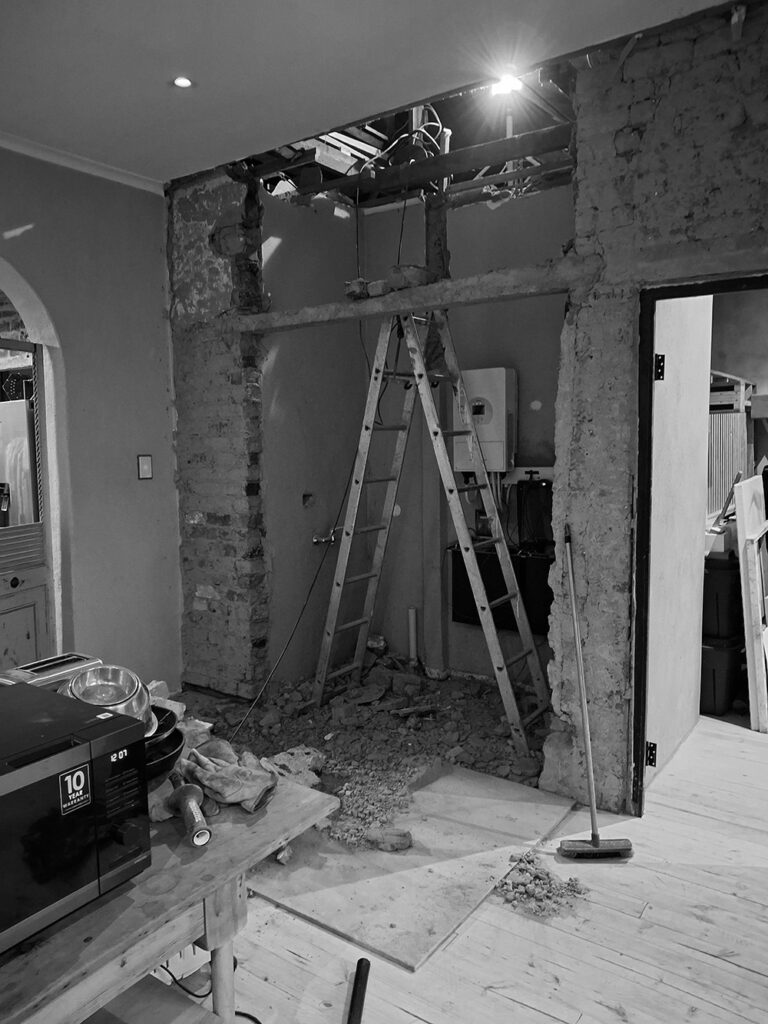 Redesign of the laundry and kitchen area in an 80-year-old home that underwent too many renos and is now being returned to her previous glory.