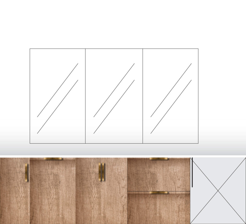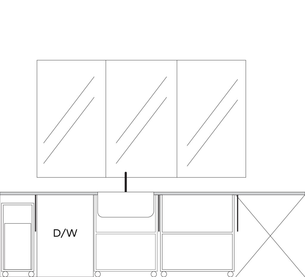 With the floorplan decided, we can then move onto the elevations where in this case, you can suggest how the cupboards will be split up, whether the client required more draw space vs big pot space. With this client being an industrial designer, he opted for pull out shelving units (easier to clean behind and underneath, so they are not fixed, but it looks like a normal kitchen if you were just to walk in and see it.