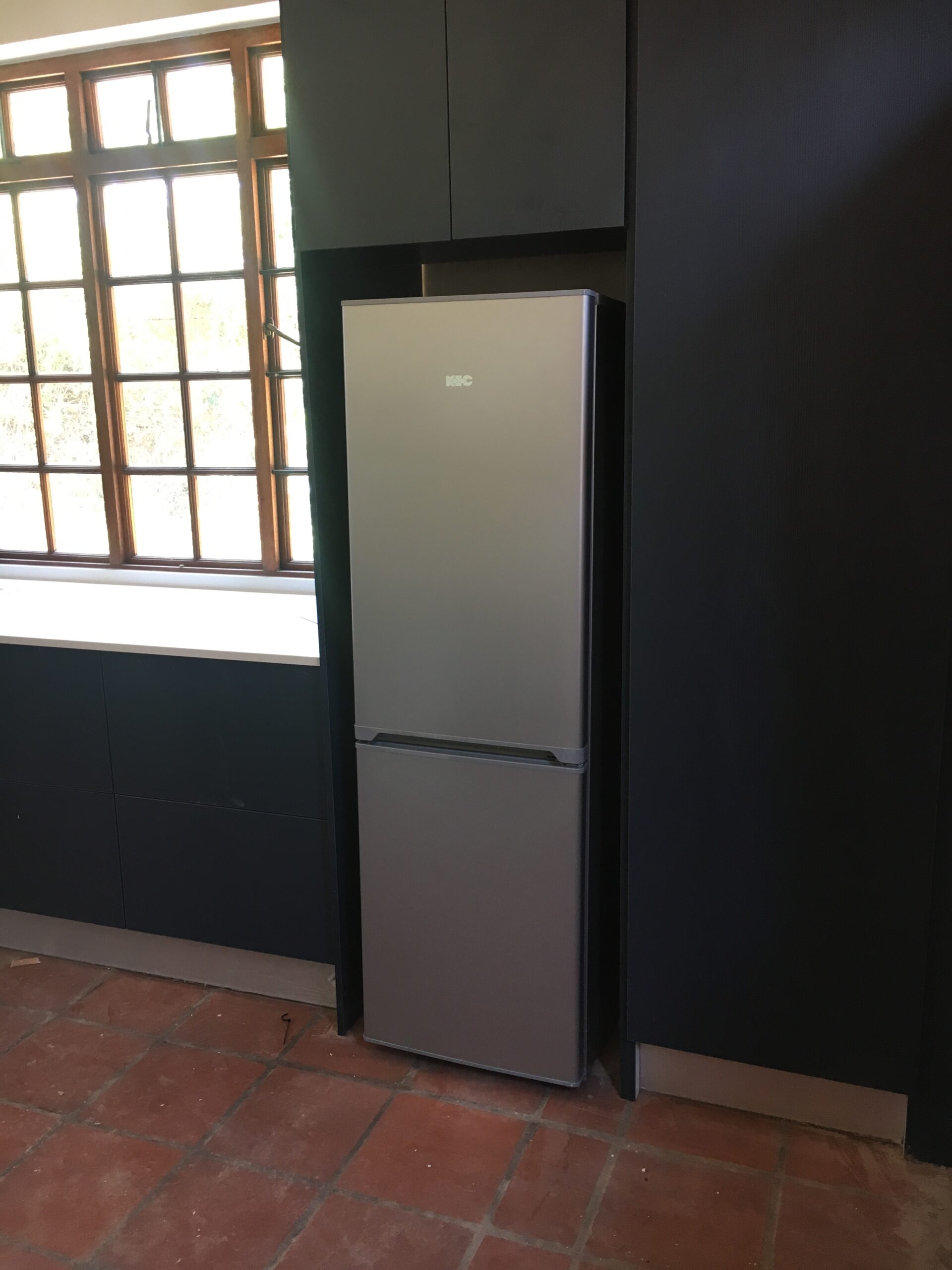 - Dark blue cupboards to change the look of the kitchen immediately, and brings some life into the kitchen