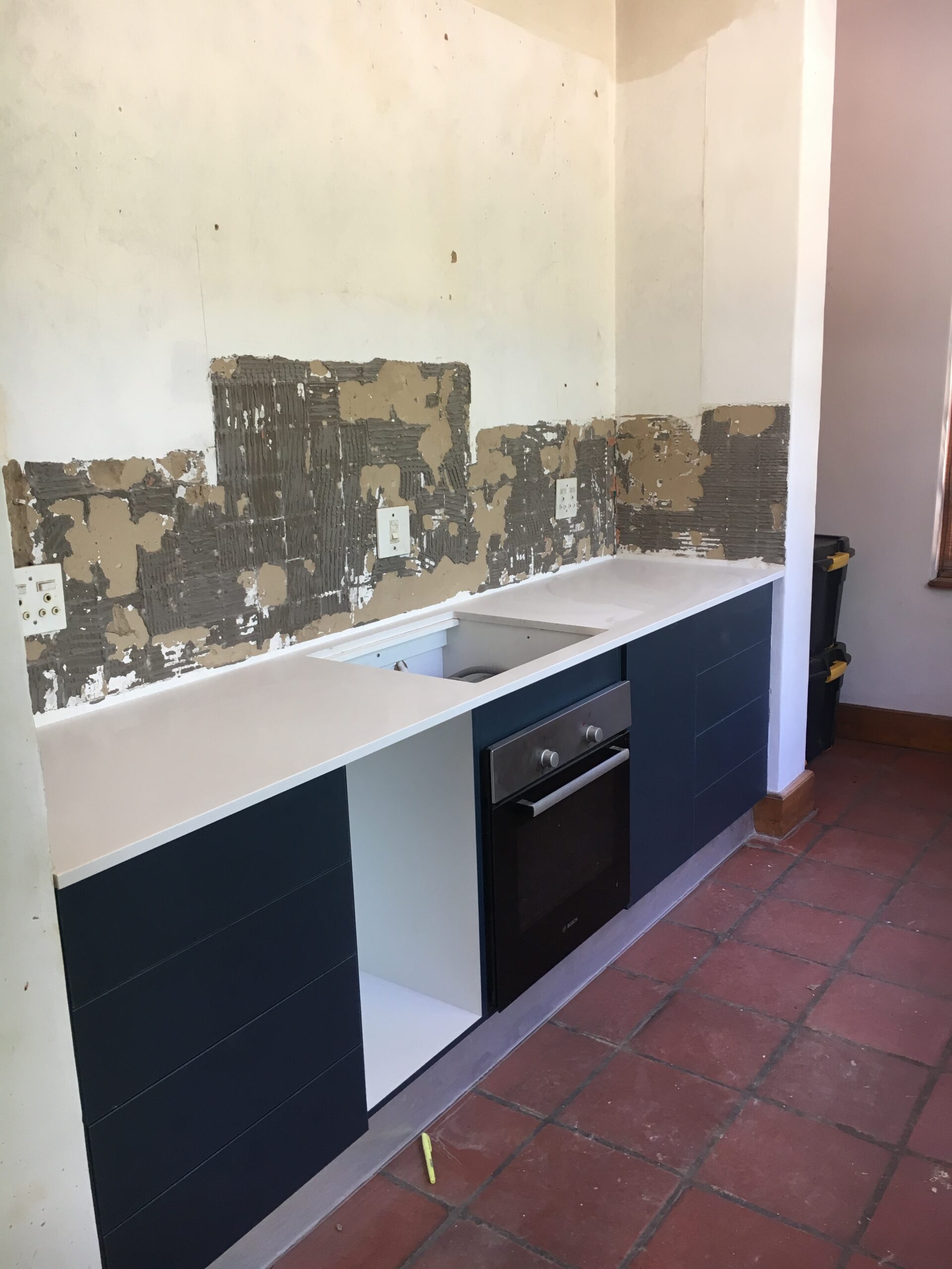 - Existing house has terracotta tiles throughout which we had to work with for this job